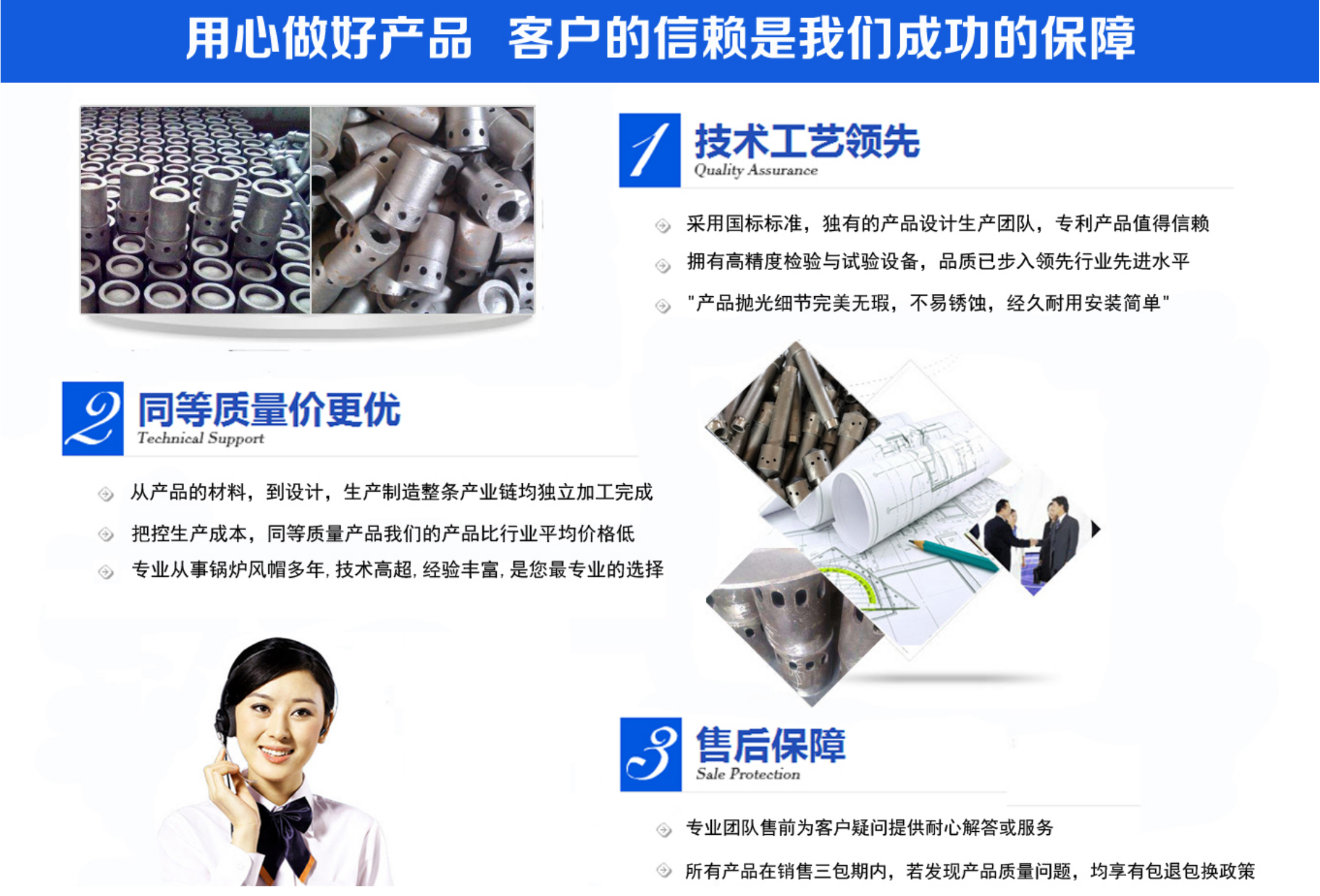 聊城營(yíng)輝金屬材料有限公司主營(yíng)鍋爐風(fēng)帽,流化床風(fēng)帽,鍋爐鑄鋼風(fēng)帽,鍋爐風(fēng)帽廠(chǎng)家等,我廠(chǎng)多年來(lái)憑借不斷的行業(yè)經(jīng)驗(yàn)提升自身的技術(shù)實(shí)力,在行業(yè)中領(lǐng)域達(dá)到了一個(gè)前所未有的高度,與我廠(chǎng)合作的大中小企業(yè)不勝枚舉,我們擁有堅(jiān)實(shí)的技術(shù)實(shí)力支持,可靠的團(tuán)隊(duì),使用我廠(chǎng)生產(chǎn)的為您的產(chǎn)品生產(chǎn)安全來(lái)保駕護(hù)航! 一個(gè)合格的產(chǎn)品可以為您帶來(lái)質(zhì)量上的提升,并且保證生產(chǎn)安全更是當(dāng)中的重中之重。我們更希望客戶(hù)能夠選擇我們的產(chǎn)品,讓我們與您共同奮斗?! ∥覀冎铝τ谧鲂袠I(yè)的精英,為您解決所有您需要解決的問(wèn)題!我們會(huì)認(rèn)真對(duì)待每一個(gè)產(chǎn)品,保證您可以享受到完美的服務(wù)待遇!為您解決麻煩是我們的宗旨! 歡迎各位新老朋友到廠(chǎng)參觀(guān),蒞臨指導(dǎo),歡迎隨時(shí)咨詢(xún)本站客服,我們將竭誠(chéng)為您服務(wù)!...